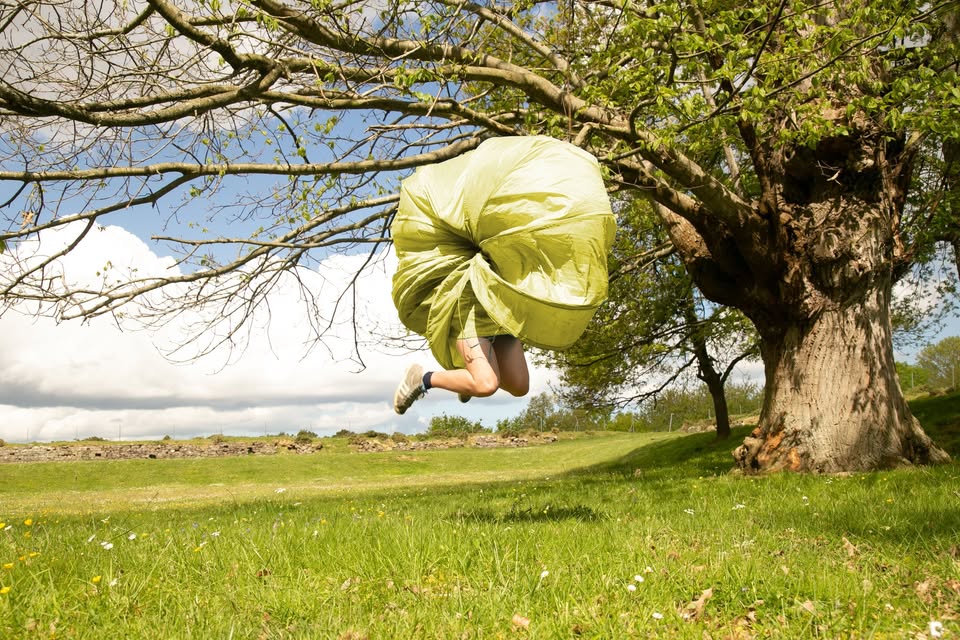 Une toile de tente, des cerceaux et un corps avancent de métamorphose en métamorphoses dans une course fragile, drôle et insolite avec l’existence. Délicate situation que celle de vivre… Tout se forme, se déforme et se reforme sans cesse ! Comment être ici ? Comment vivre dans cet insaisissable présent ?